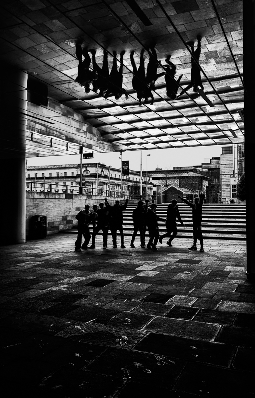 Saw the reflection as one or two office staff passed under here, then when waiting for more a bunch of young boys - probably under 16 asked if i was a photographer and if they could have their photo's taken. You can't see in silhouette, but the boy on the right has just had his trousers yanked down, and is revelling in the attention! A few of them are now following me on Instagram :-)